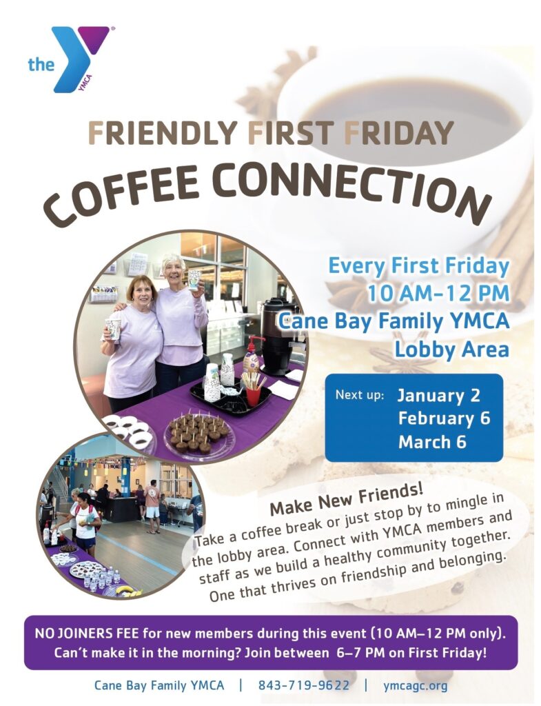 Meet and connect with YMCA members and staff the first Friday of every month.